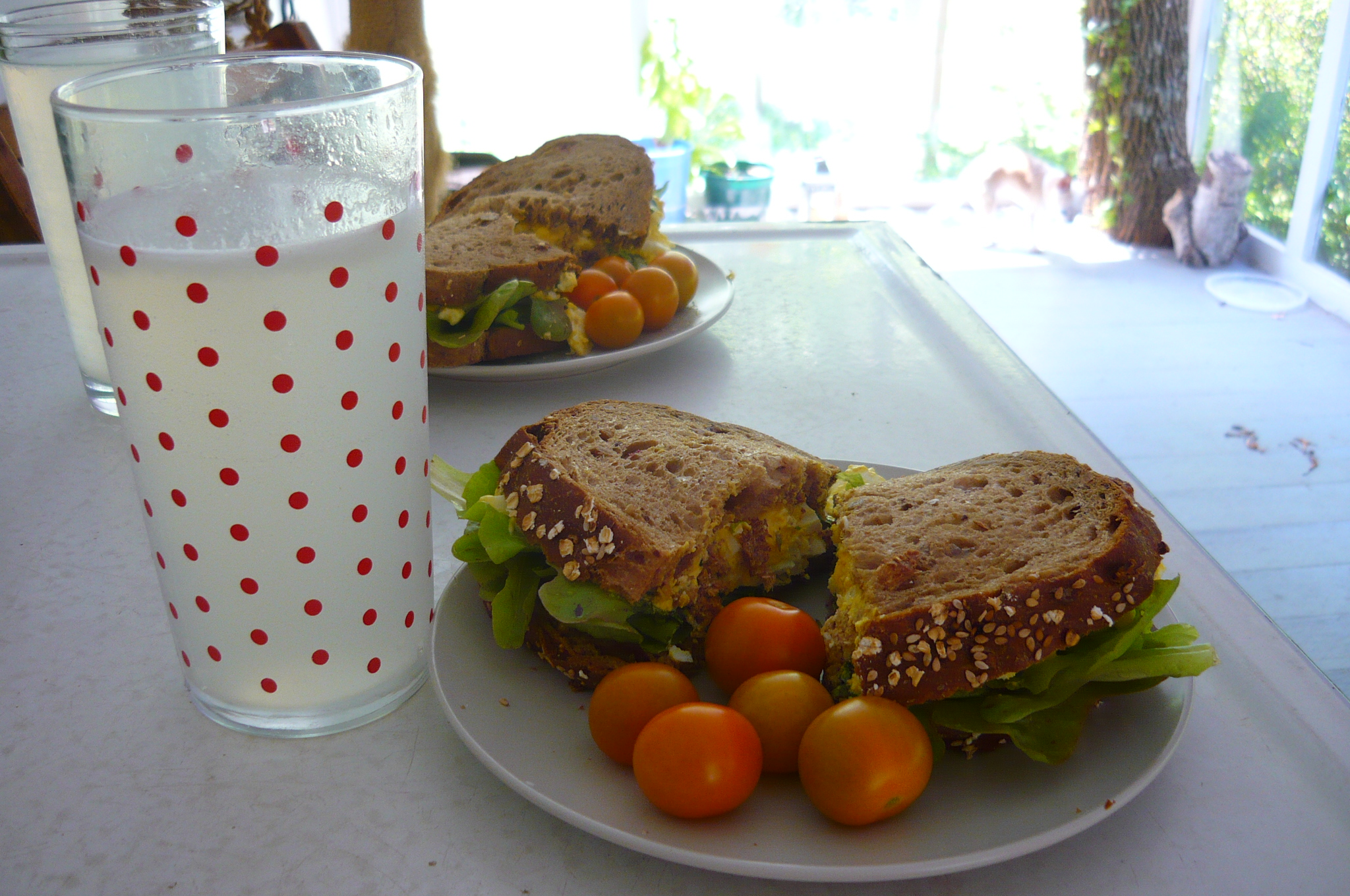 we ate most of our meals on the porch, including egg salad sandwiches (from our own eggs of course) and lots of tomatoes. and fresh mint sun tea!