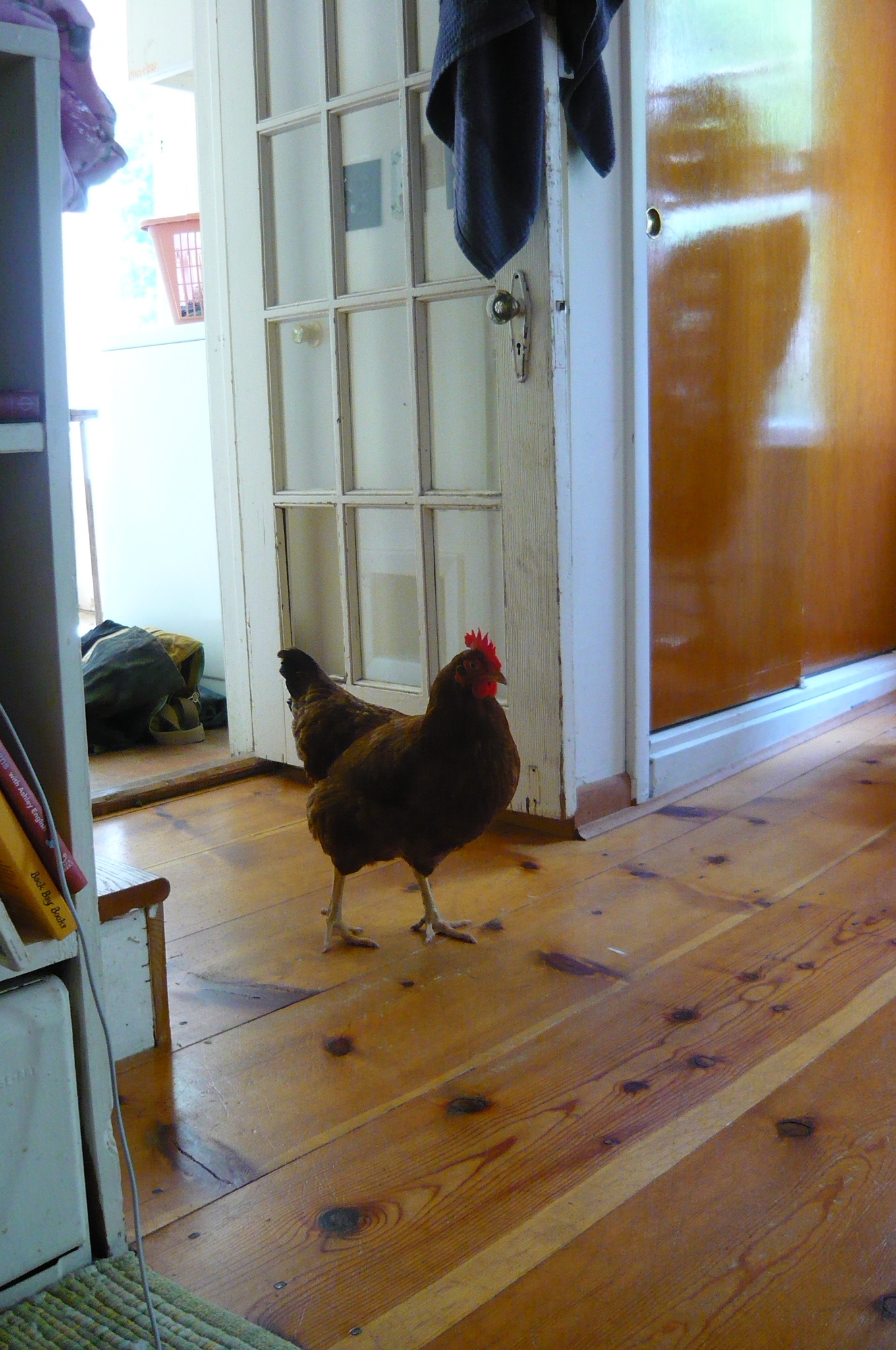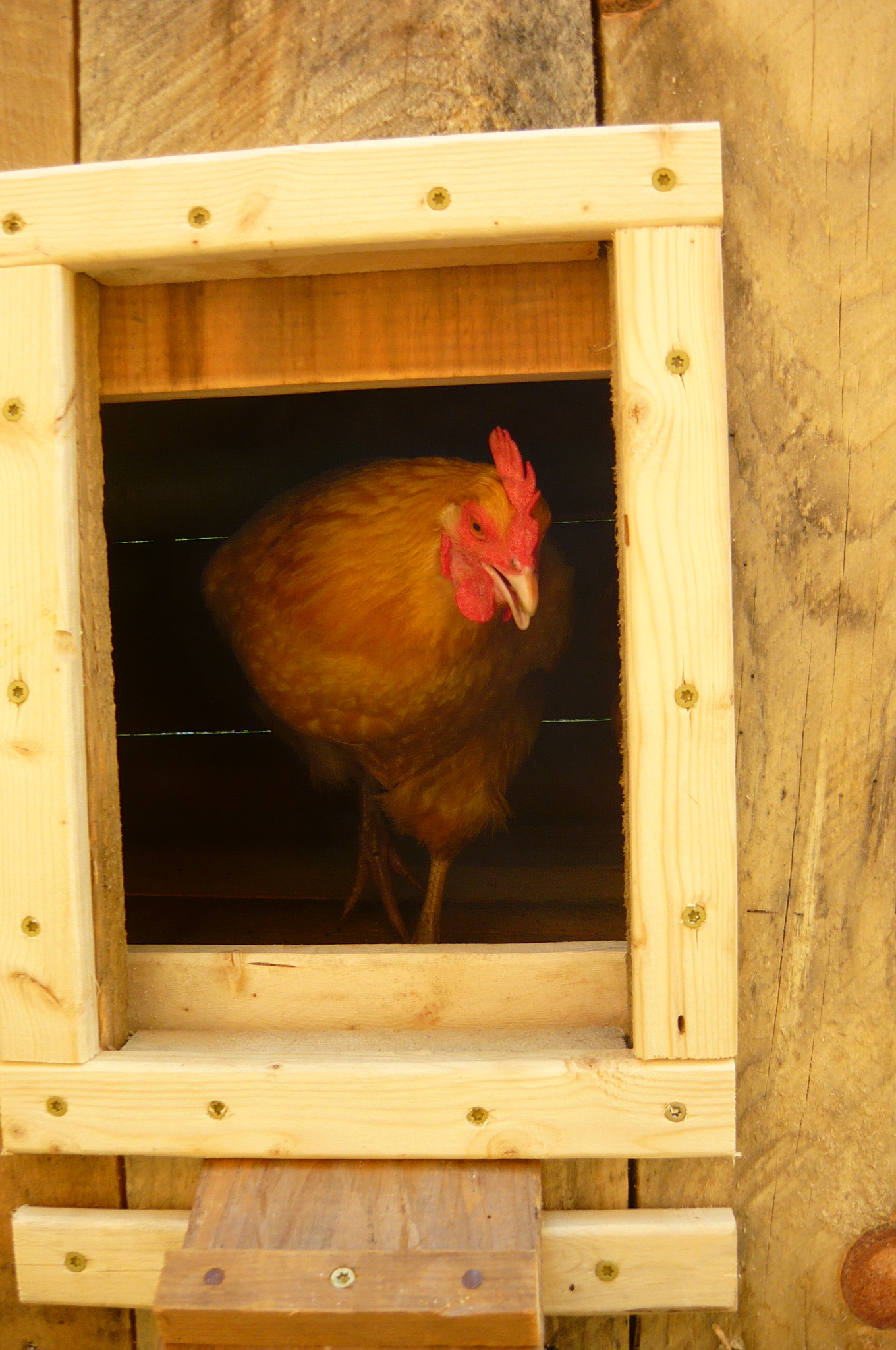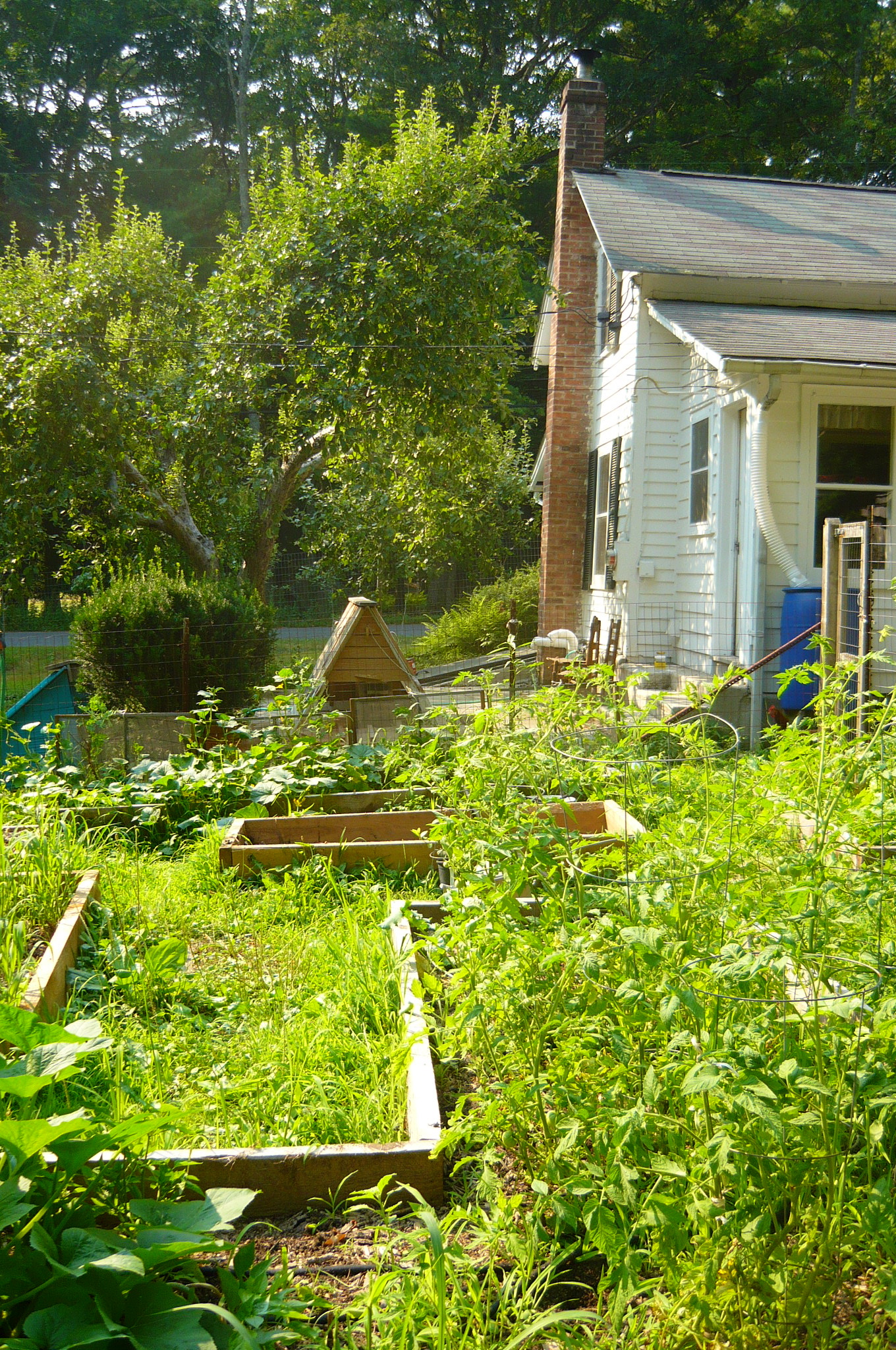 what happened last july? well, for starters, mr. smith built the ladies a NEW COOP! this was inspired by several incidents with a marauding, chicken-eating bear in the neighborhood. we knew our old coop was no defense against a bear, since it wasn’t even attached to the ground. plus it was pretty small for our long winters, when the girls spend a lot of time inside. as you can see, they took to it quite well and love laying in their new nesting boxes!