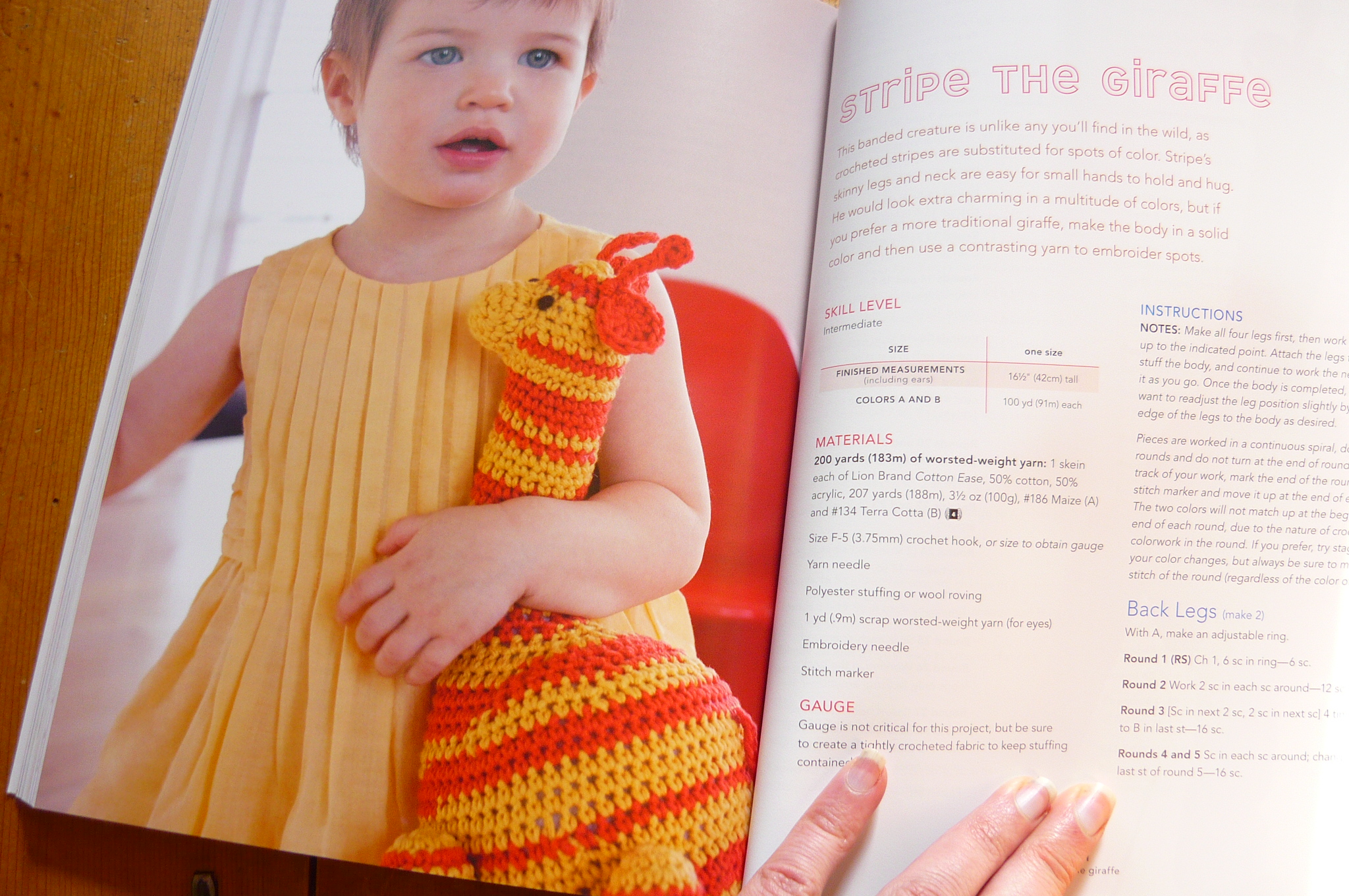 LP: When my nephew was born, I had all of these ideas of cool things I wanted to make for him. I started out with toys, which I designed on the fly (I made “prototypes” for Stripe the Giraffe and Tegue’s Jingle Ball for him). But when I started looking for garments, which I was less comfortable designing at that time, I really couldn’t find anything I loved. I’m used to changing colors and yarns on patterns, but even then nothing did it for me. I found that the customers at my yarn shop had similar experiences (and often gave up to pursue knitted patterns, of which there are tons), and it clicked that there needed to be a hip, modern baby crochet book out there. So, I decided to write it!