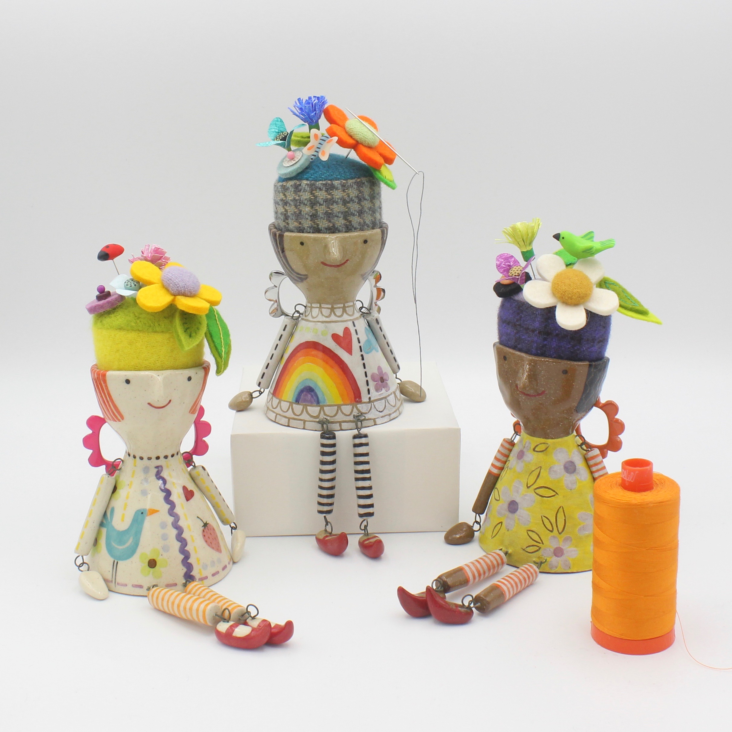 funbit #4: do you know about *Sewing Fairies*? i mention them a lot in my classes; they’re the ones who help you magically thread your needle even though you can barely see the eye, or who naughtily make your bobbin run out 3 inches before the end of your seam. my brilliant pal Deborah of Fish Museum + Circus has created these clever one-of-a-kind ceramic Sewing Fairies that are so exquisitely lovely! their wings are a tiny pair of scissors! their hats are pincushions! and they have a magnetic needle-minder too. if you’d like to invite one to keep you company while you sew, they’ll be posted at 5pm EST on Saturday, 3/7/20. they’re sure to go quick!