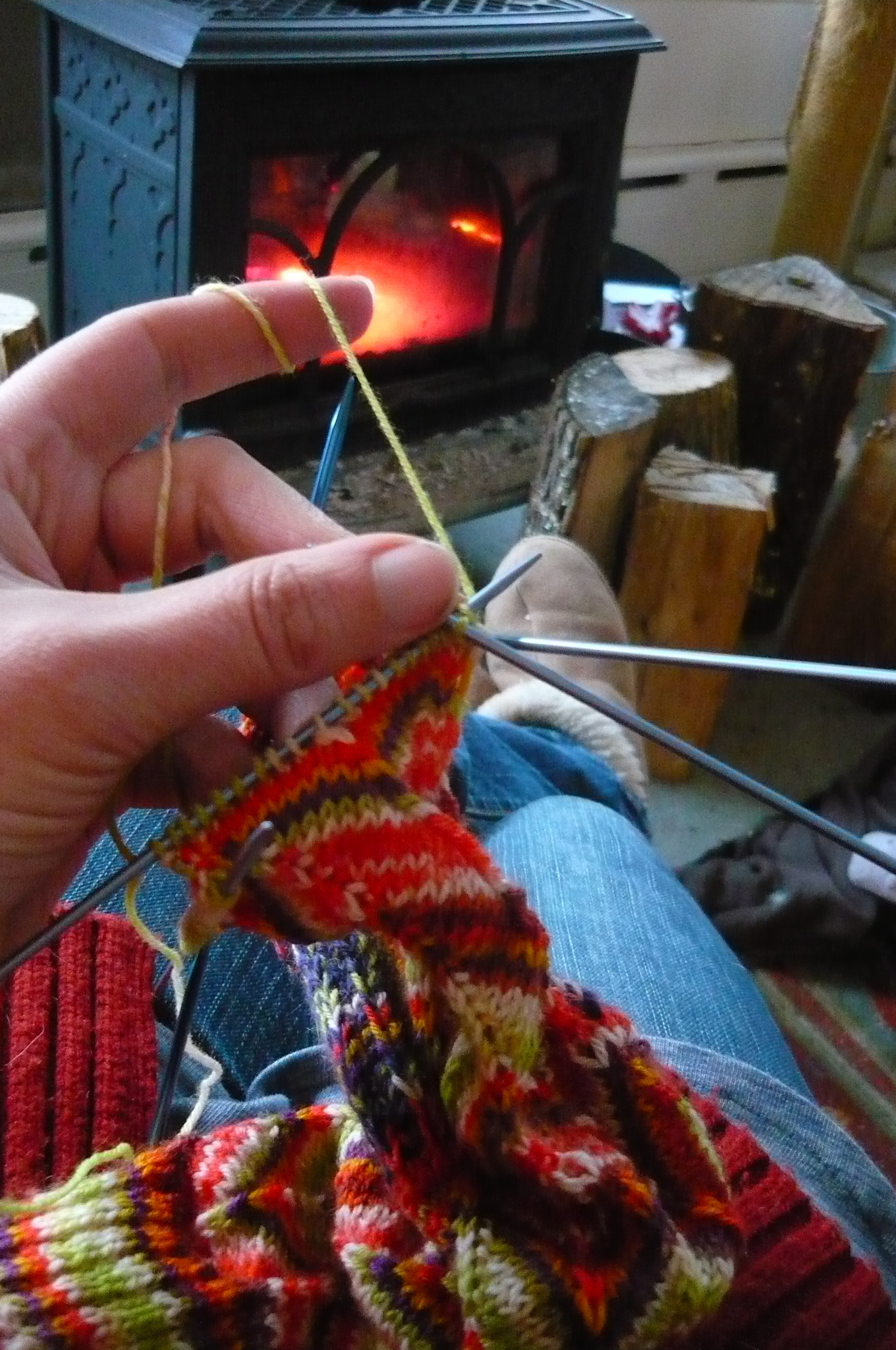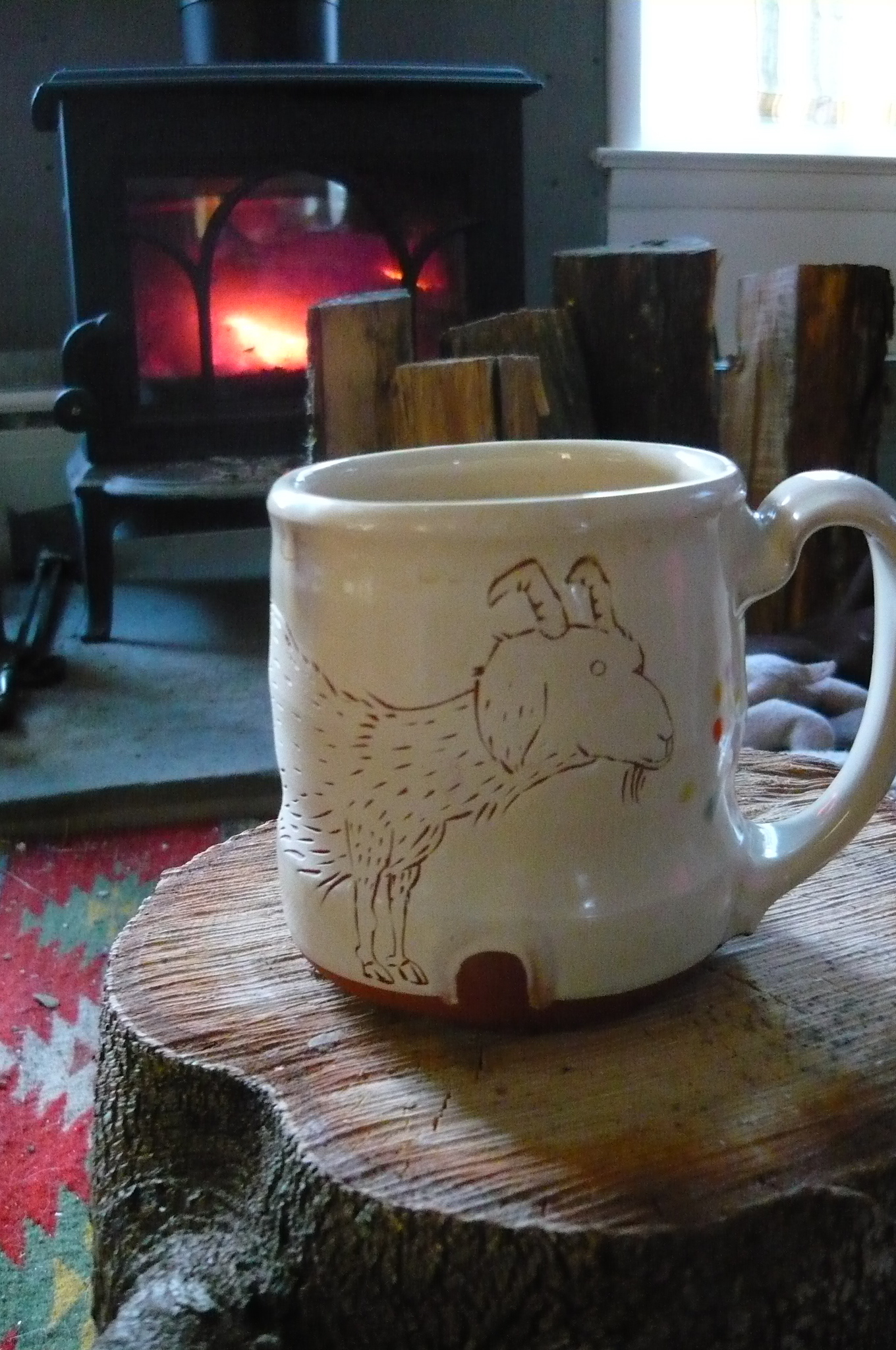 the original plan was that Mr. Smith would go to the UK to visit his family and return on the 22nd, then he and i were going to have a cozy Xmas day in our new house, in front of our new woodstove, and i would go to Ohio to visit my family the week following. unfortunately, Mother Nature had different plans, and the crazy snowstorm that brought much of Europe to a standstill caused his flight to be canceled. and the first one he could rebook onto wasn’t until the 27th. i’m sure everyone was affected in one way or another by the global weather chaos, so i’ll spare you the details, but in the end i had a solitary day with the animals, spinning (i finally finished the skein of yarn for the project, but more on that in another post), crocheting and knitting by the fire, and drinking endless amounts of tea in my new goat mug from my favorite potter. not a bad day at all…
