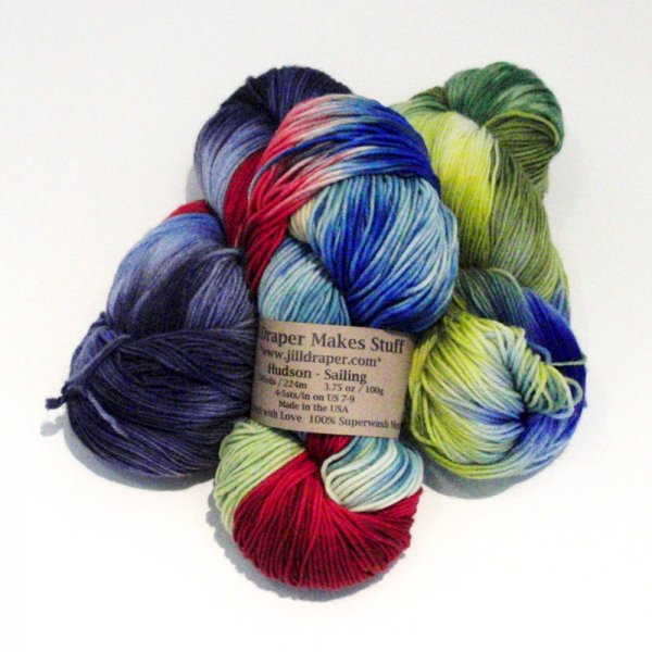 – 1 skein of hand-dyed yarn by Jill Draper Makes Stuff
