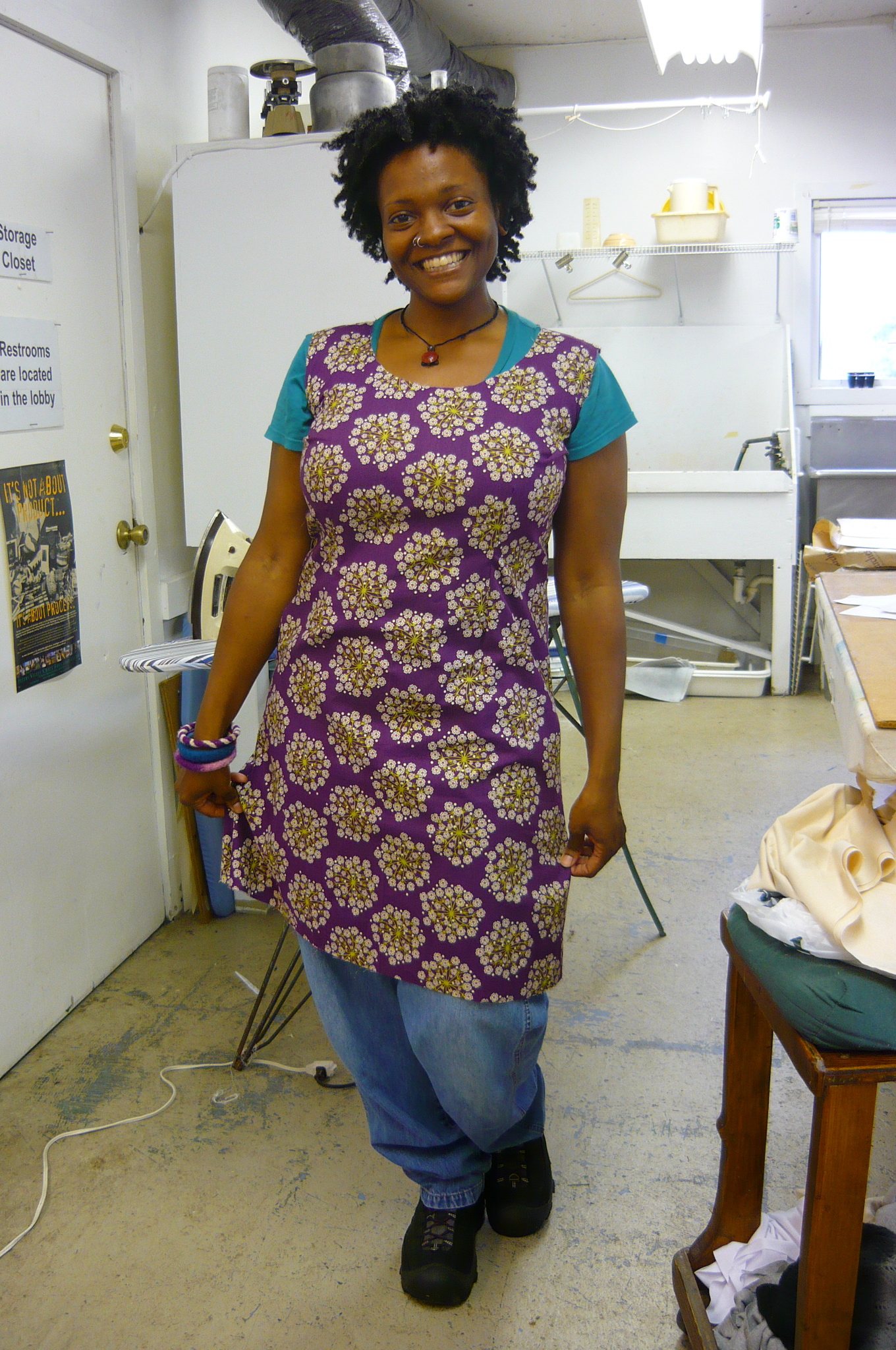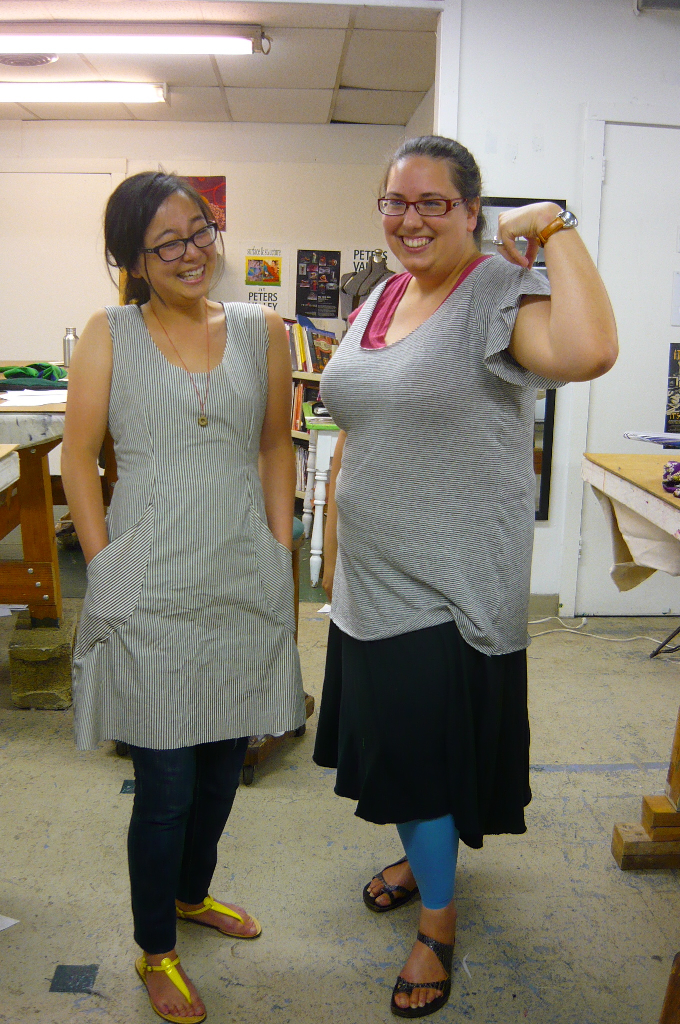 several of them even used their new skills to make variations… Natalee added some stylized pockets and played with the grainline of her stripes, and Yahaira made a tunic with a drapey cap sleeve.