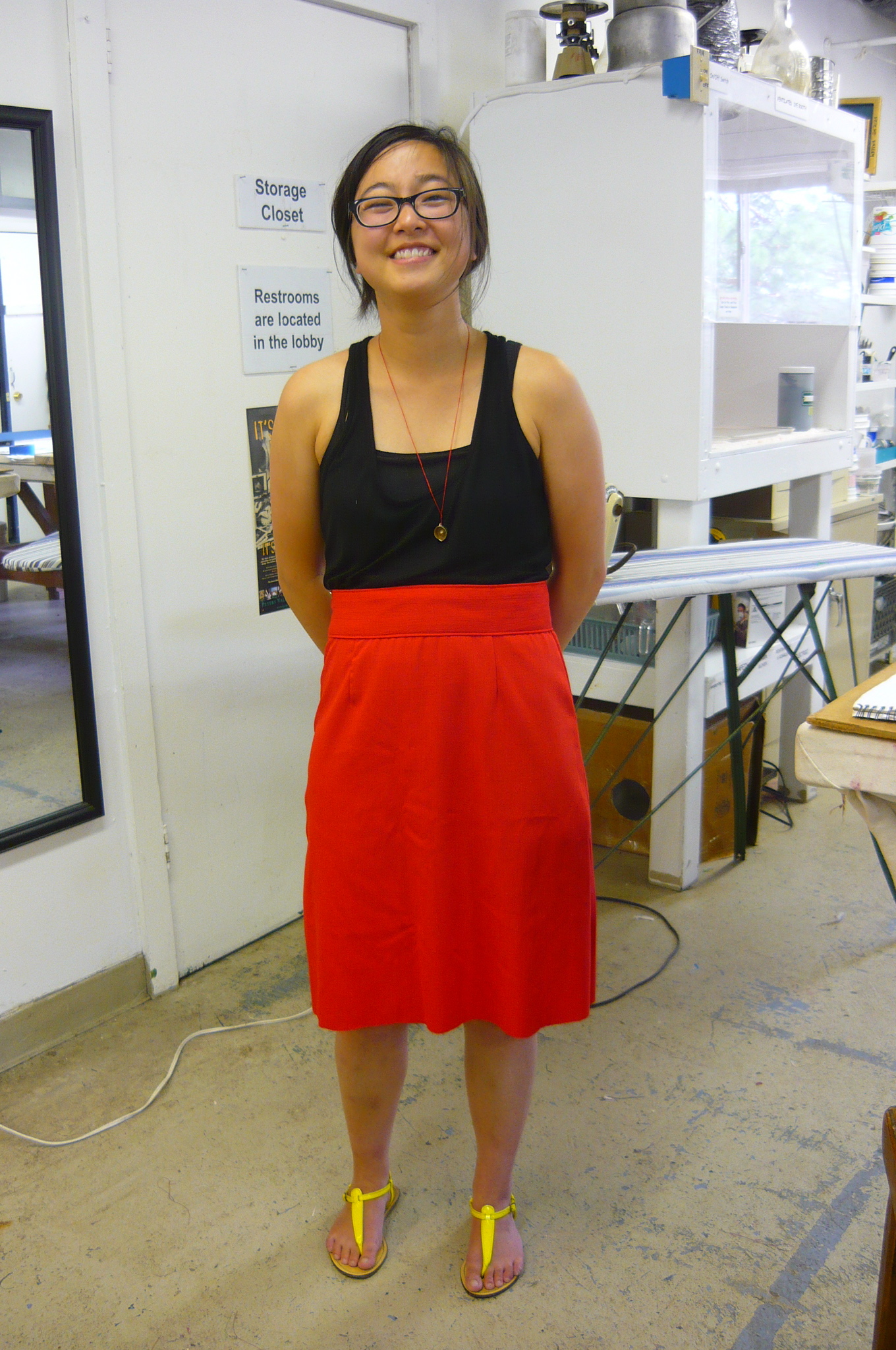 check out Natalee’s hot red skirt! she wanted a wide waistband, and now she knows how to do it…