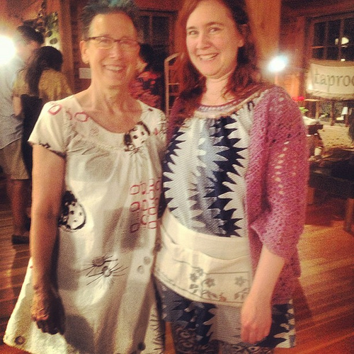 and tracy made hers out of her own hand-printed fabric!!! it made her smock a real show-stopper, and the perfect thing to wear while selling her textiles at the fair that evening.