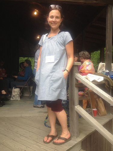 one of the classes i taught at the June session of SAW was Squam Smock. this was the very first time i’ve ever taught people how to sew their own versions of my popular smock dresses, using my original patterns, and what fun we had! it was a pure joy to teach this class because it was intermediate level, meaning no one needed me to help thread the machine, or wind a bobbin, and i could explain a step and they would run off and DO it!