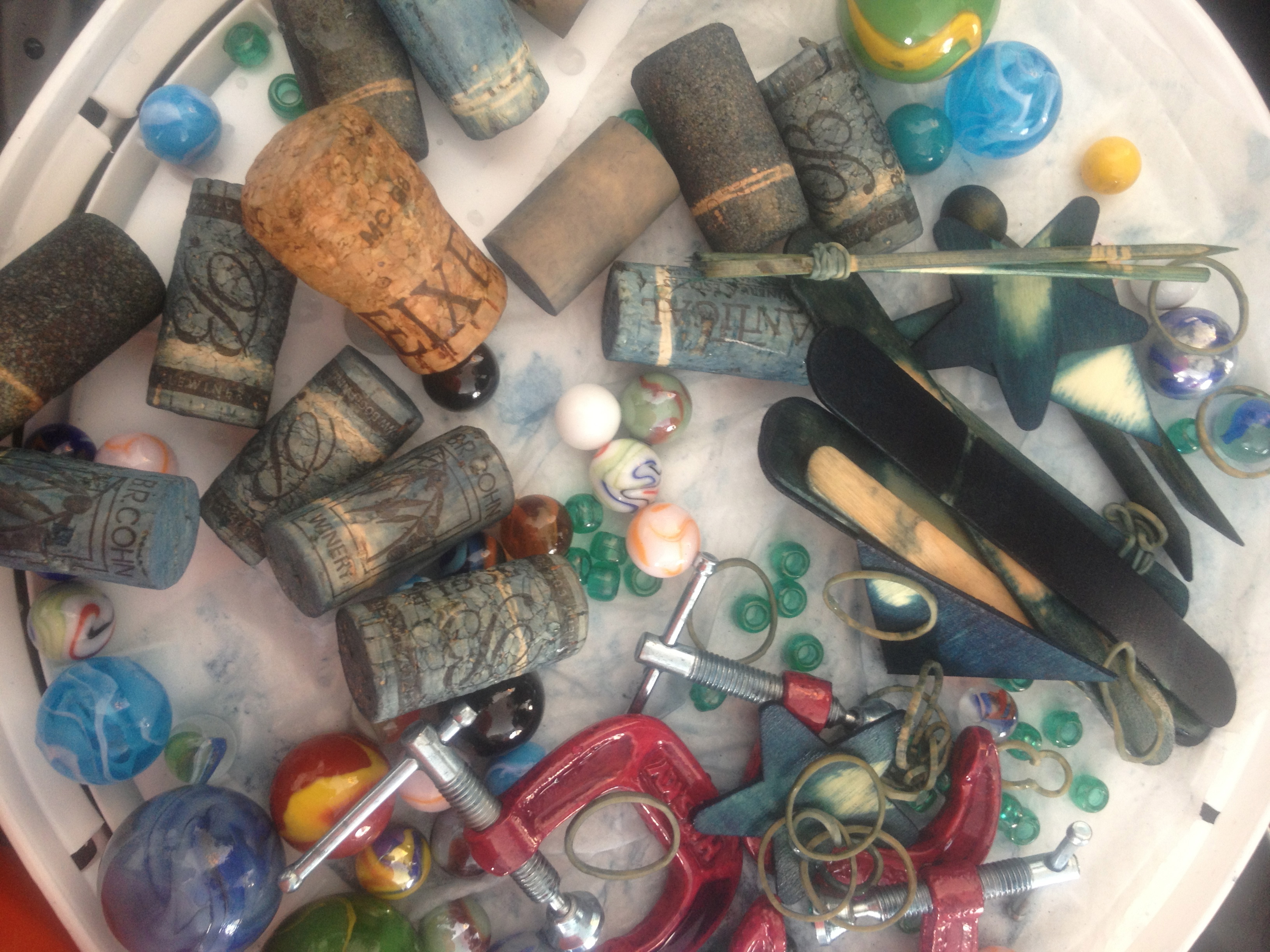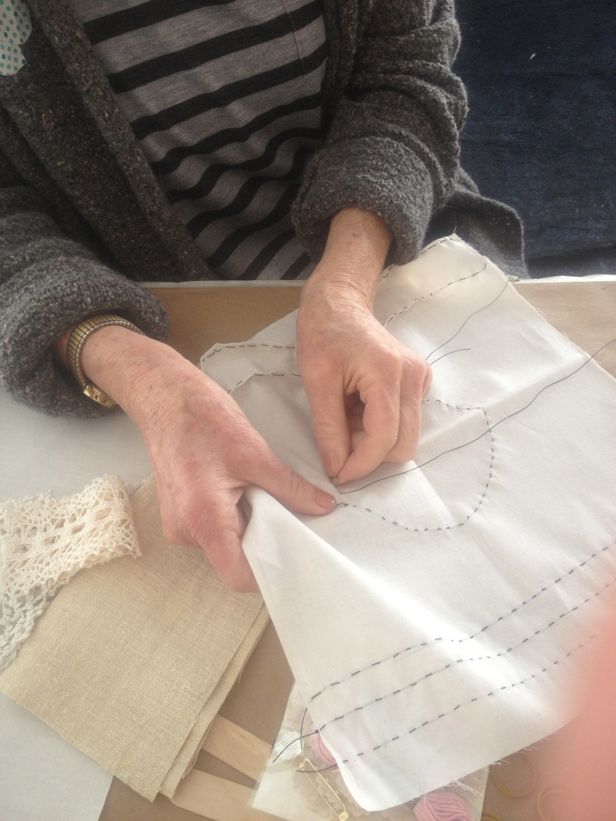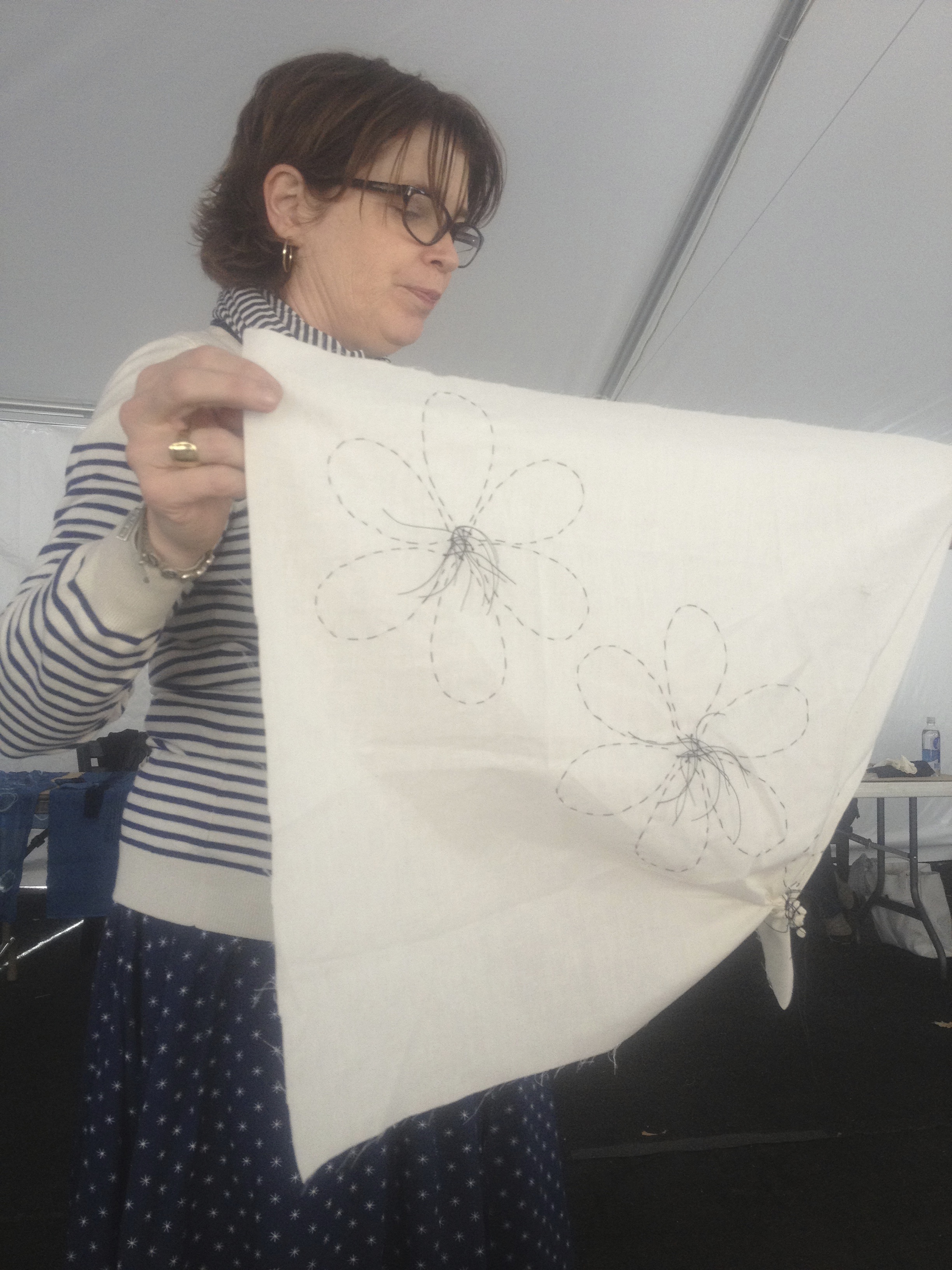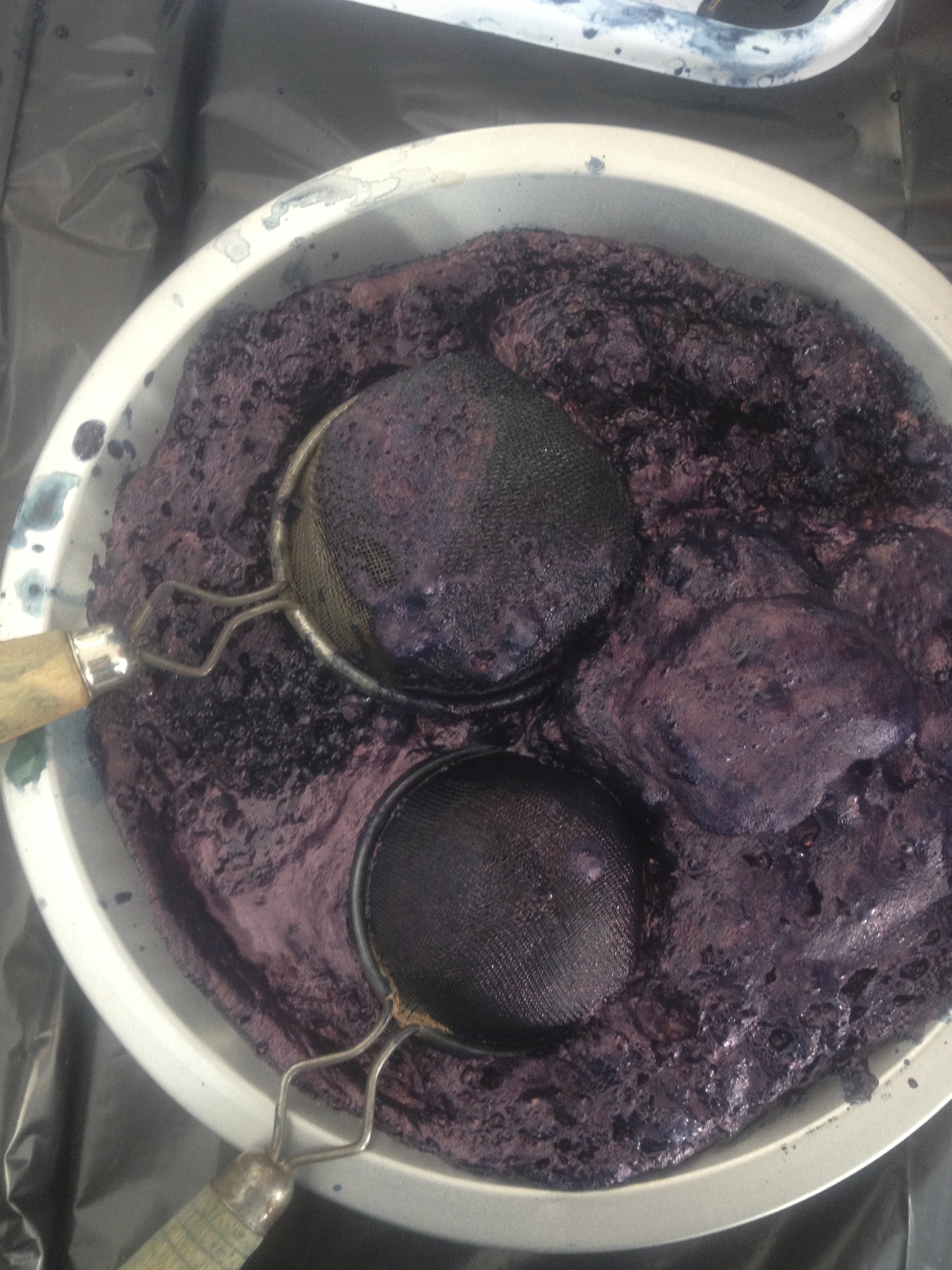 we did lots of different resist techniques, some super-easy and some quite labor-intensive, to create different shapes on the cloth when it’s immersed in the dye…