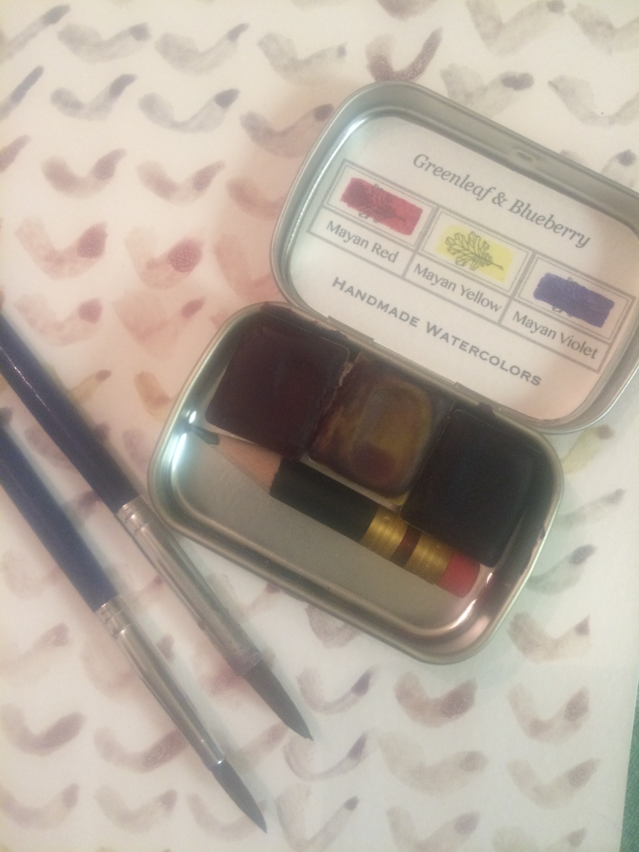 oh yeah, about those watercolors! my darling friend Beverly gifted me this sweet set of the most awesome handmade watercolors in a tiny Altoids tin from Greenleaf & Blueberry and i think it’s the best thing ever. Bev is a fan and i admired her set when we were in Maine, and now i’m totally crushing out on them too. they make their paints with natural geological pigments, gum arabic, and honey!