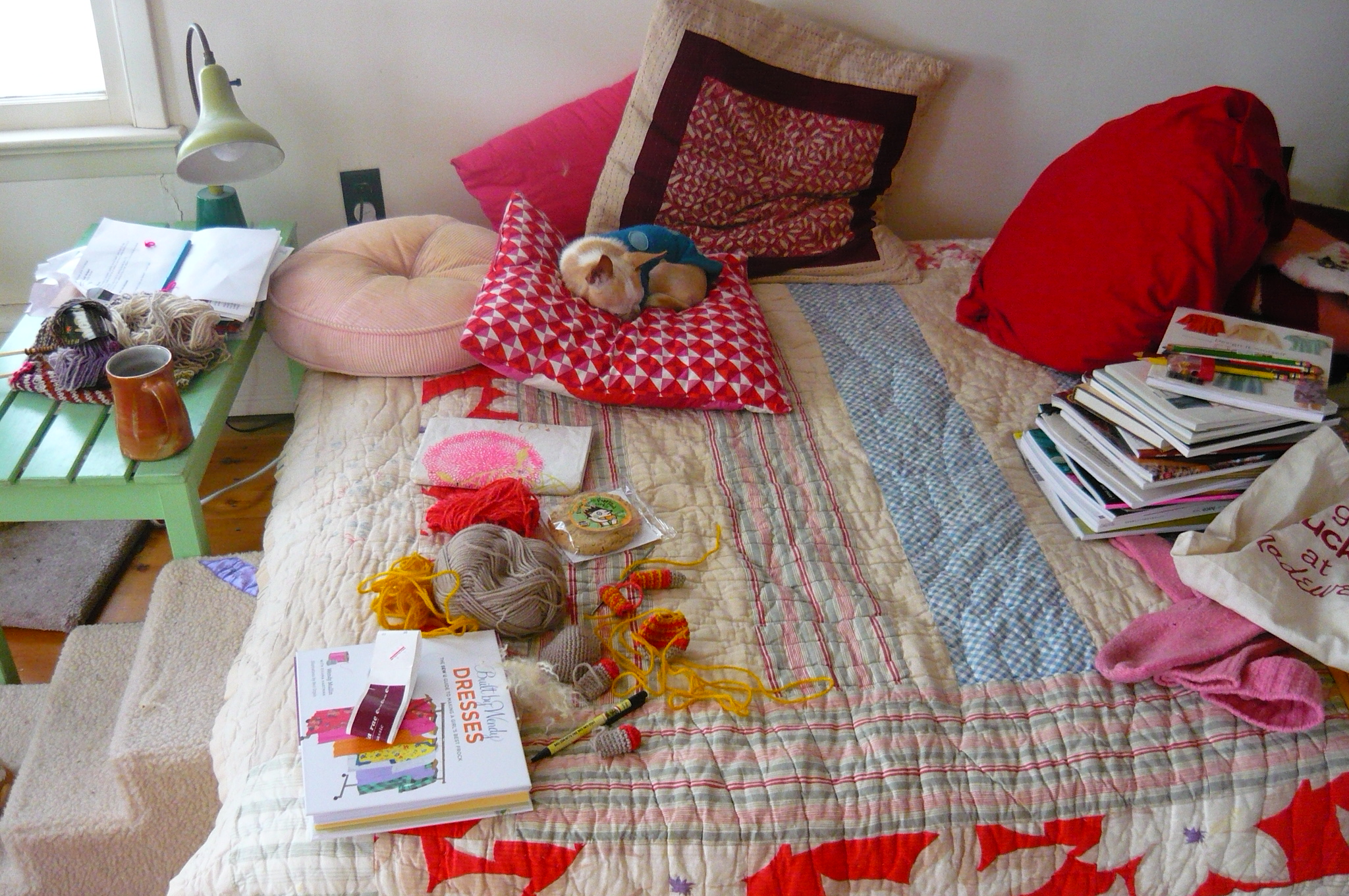 in many ways it was like one of my favorite fantasies: house arrest with all my craft supplies (and plenty of food). for the first day i was happy as can be spinning yarn, looking at books, and crocheting by candlelight. but by the second day the temperature indoors was getting close to the one outdoors, and the complete lack of communication (no phone or radio, and mr. smith was down in the city) started to get to me. i bailed, and went to jill’s for the night, where the lights were still on.