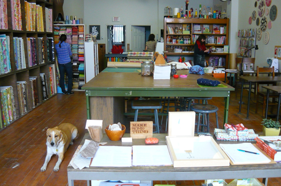 as usual (when possible), Gertie assisted me in teaching the class… (this photo by Karyn; see lots more projects and products from this heavenly place on her flickr page.)