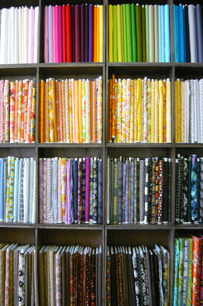 i didn’t even let myself go near this awesome wall of fabric. i knew if i did, too much of it would beg to come home with me. unfortunately the Nani Iro double gauze was lying out on a table and i fell prey to it’s magical powers. i chose this one. i’ll show you all of my treasures later this week!