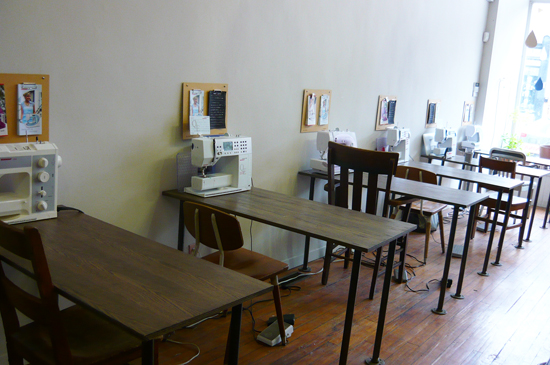 here are the sewing tables, equipped with Berninas, which are also sold there.