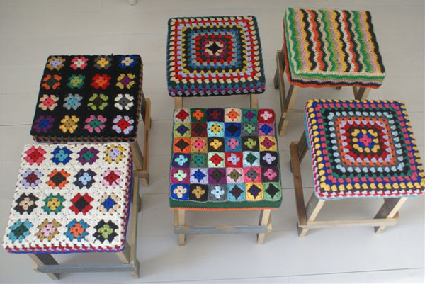 i don’t usually go in for the “i saw this on another blog” type of post, but when i saw these crochet-covered recycled wood stools over on poppytalk the other day, i just about burst with glee. how perfect are they? i love everything this woman (her name is ingrid and her company is wood & wool stool) makes and want to be her new best friend! the combining of crochet with reclaimed wood is just divine, and speaks exactly to the aesthetic i want in my new little house. you all know i am always trying to promote good crochet and here is a perfect example, both classic and modern. she also makes gorgeous blankets, pillows, and hangers. i’m swooning! oh yeah, she has a blog and an etsy shop too…